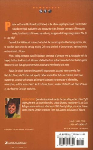 Pastor and fireman Nick Foster found the body in the inferno engulfing his church. From the bullet wound in the head, it’s clear this is no ordinary fire victim. The quiet community of Newpointe, reeling from the shock of the dead man’s identity, struggles with the agonizing question: who did it—and why? Paramedic Issie Mattreaux is no icon of virtue, but she cares enough about her teenage nephew, Jake, to track him down when he turns up missing. Only, what she finds is far more than a harmless bonfire on the outskirts of town. After a chilling attempt on Issie’s life, Nick takes on the role of protector even as he struggles with the tragedy that has struck his church. Whoever is behind the fire is far from finished. Unknown to Nick, that person’s twisted agenda now threatens to consume everything he loves most. Trial by Fire is book four in the Newpointe 911 series by award-winning novelist Terri Blackstock. Newpointe 911 offers taut, superbly crafted novels of faith, fear, and close-knit small-town relationships, seasoned with romance and tempered by insights into the nature of relationships, redemption, and the human heart. Look also for Private Justice, Line of Duty, Shadow of Doubt, and Word of Honor.