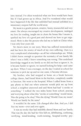 Mental illness is the sort of thing we don't like to talk about. It doesn't reduce nicely to simple solutions and happy outcomes. So instead, too often we reduce people who are mentally ill to caricatures and ghosts, and simply pretend they don't exist. They do exist, however—statistics suggest that one in four people suffer from some kind of mental illness. And then there's their friends and family members, who bear their own scars and anxious thoughts, and who see no safe place to talk about the impact of mental illness on their lives and their loved ones. Many of these people are sitting in churches week after week, suffering in stigmatized silence. In Troubled Minds Amy Simpson, whose family knows the trauma and bewilderment of mental illness, reminds us that people with mental illness are our neighbors and our brothers and sisters in Christ, and she shows us the path to loving them well and becoming a church that loves God with whole hearts and whole souls, with the strength we have and with minds that are whole as well as minds that are troubled.