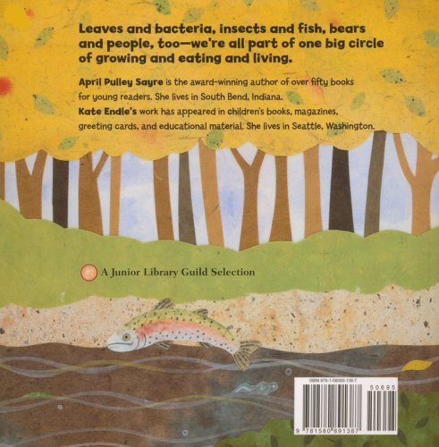Energetic collage art and simple, lyrical text depict the ways plants and animals are connected in the food web.