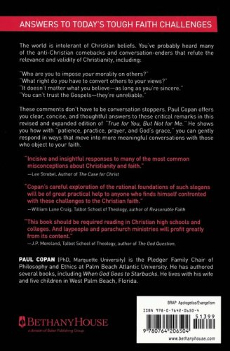 Apologetics authority Paul Copan tackles popular sayings that often leave Christians speechless, such as "All religions lead to God," "Who are you to judge others?" or "Jesus was just another great religious leader." He provides readers with thoughtful explanations of anti-Christian slogans and brief answers to help them continue their conversations with non-Christians. In addition, Copan answers questions about the unevangelized. Study questions for group or individual use are included.