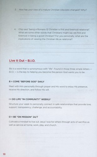 Designed to accompany the True Spirituality 12-session small group study, the study guide helps participants internalize and apply the principles taught in the DVD lessons. Each study session includes a "Take It In" section for digesting the video teaching, a "Talk It Over" section for group discussions, a "Come Before God" section for cultivating a relationship with God, a "Do Life in Community" section for developing authentic biblical relationships with others, and a "Be On Mission" section for living out your Christianity in the world. Each group participant should have a study guide.