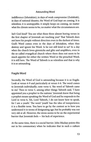 In August 2010 Dale Ralph Davis delivered these five messages from Jeremiah at the Evangelical Movement of Wales Conference in Aberystwyth. Those who were there on the occasion will recall the power and passion of this rich exposition of the Word of God. As he explains in the Preface, Dale Ralph Davis deliberately chose five passages that focussed on the ‘down’ aspect of the prophet’s message. He explains his choice of passages in these words: . . . . they supply a healthy corrective to some of the flippant and flimsy optimism we meet in certain ‘Christian’ propaganda about the Christian life and ministry. My prayer is that a number of the Lord’s servants who are slogging on in the paths of righteousness will, by the Spirit’s chemistry, be strangely comforted by this tormented prophet and the ‘ruthless Warrior’ who stood at his side. Dr Davis preaching, slightly adapted here for the printed page, will surely be used to fulfil that prayer.