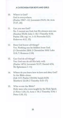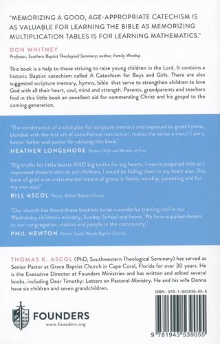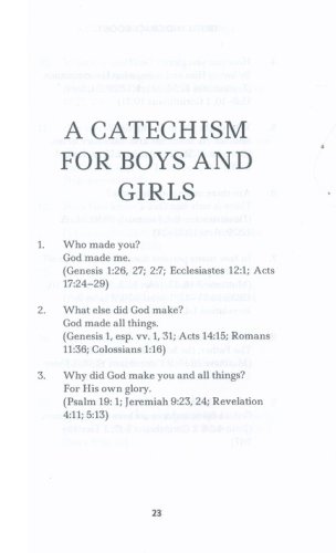 A book written to help those striving to raise youngchildren in the Lord. It contains a historic Baptist catechism called A Catechism for boys and girls. There are also suggested scripture memory and hymns that serve to strengthen children to love God with all their heart, soul,mind, and strength. Parents, grandparents, and teachers find in this little book an excellent aid for commending Christ and the gospel to the coming generation.