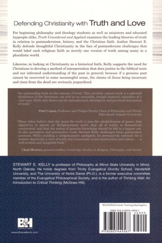 For philosophy and theology students, Truth Considered and Applied examines the leading theories of truth in relation to postmodernism, history, and the Christian faith. Author Stewart E. Kelly defends Christianity in the face of postmodernist challenges that would label such religious faith as merely one version of truth among many in a pluralistic world. Likewise, in looking at Christianity as a historical faith, Kelly supports the need for Christians to develop a hermeneutic that does justice to the biblical texts and our informed understanding of the past in general; because if a genuine past cannot be recovered in some meaningful sense, the claims of Jesus being incarnate and risen from the dead are seriously jeopardized.
