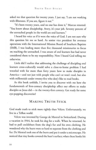 Have you ever wondered why more than half the Bible is narrative? God had it written that way so people who were nonreaders could remember it. Today, we live in a literate society, but many people in our increasingly digital age choose not to read. Using techniques proven to work worldwide with oral learners, Truth That Sticks shows you how to communicate timeless truth with the digital generation–plus the 93 million Americans who can't, won't, or don't read. Avery Willis and Mark Snowden introduce you to effective disciple-making using stories, dialog, drama, and songs to make truth stick.