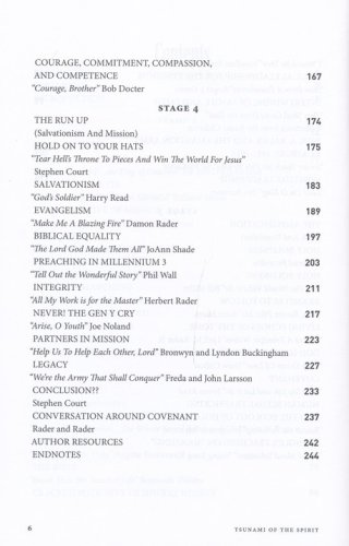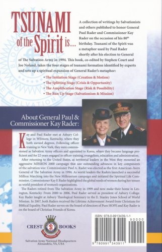 A collection of writings by Salvationists and others published to honor General Paul Rader and Commissioner Kay Rader on the occasion of his 80th birthday. Tsunami of the Spirit was a metaphor used by Paul Rader shortly after his election to General of the Salvation Army in 1994. This book, co-edited by Stephen Court and Joe Noland, takes the four stages of tsunami formation identified by experts and sets up a spiritual expansion of General Rader's metaphor:The Initiation Stage (Creation & Motion)The Splitting Stage (Crisis & Opportunity)The Amplification Stage (Risk & Possibility)The Run Up Stage (Salvationism & Mission)
