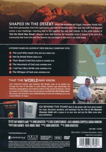 Fire on the Mountain was filmed on location at the Red Sea, Sinai, Serabit al Khadim, and Jebel Katarina. These illuminating "faith lessons" afford a new understanding of the Bible that will ground your convictions and transform your life. The Faith Lessons video series is ideal for use in small groups, personal and family Bible studies, and adult Sunday school. Individual believers and families will gain vital insights from long-ago times and cultures through this innovative approach to Bible study.