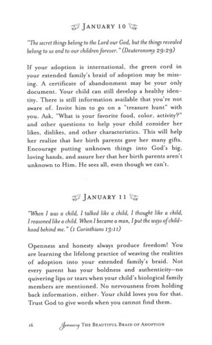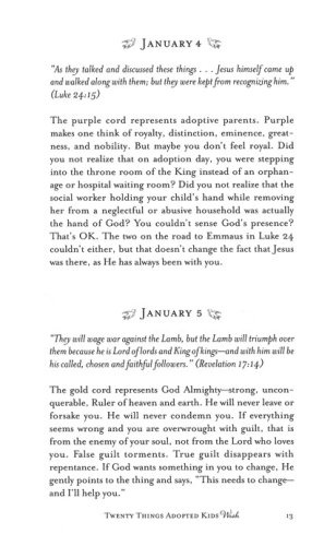 Twenty Things Adoptive Kids Wish devotional gives adoptive families encouragement as they seek God to work through the emotions unique to their family. Daily 365 inspiring devotions are filled with Scripture and authentic insight into the heart of adopted children. Powerful prayer prompts help you navigate through difficult topics such as rejection, the missing faces in their lives, and much more. As you pray together through these tough topics, you will become the greatest prayer warrior for your adopted child and God will knit your hearts together in His love.