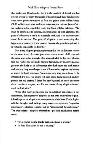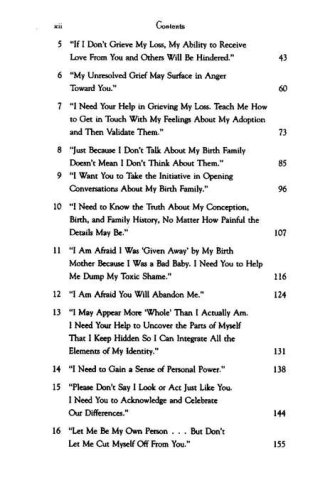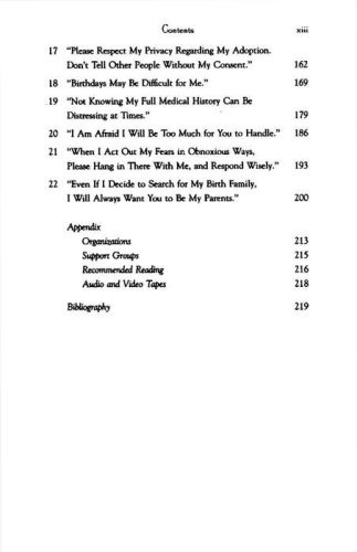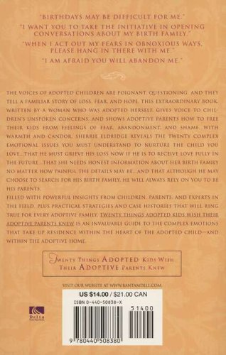 With warmth and candor, Sherrie Eldridge reveals the twenty complex emotional issues you must understand to nurture the child you love–that he must grieve his loss now if he is to receive love fully in the future–that she needs honest information about her birth family no matter how painful the details may be–and that although he may choose to search for his birth family, he will always rely on you to be his parents.