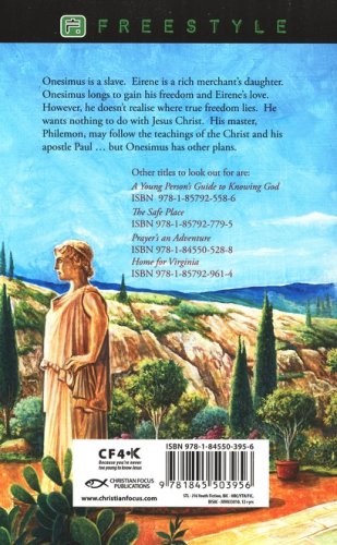 Onesimus is a slave. Eirene is a rich merchant’s daughter. Onesimus longs to gain his freedom and Eirene’s love. However, he doesn’t realize where true freedom lies. He wants nothing to do with Jesus Christ. His master, Philemon, may follow the teachings of the Christ and his apostle Paul… but Onesimus has other plans.