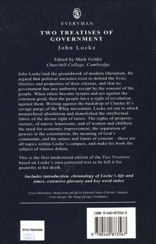 John Locke laid the groundwork of modern liberalism. He argued that political societies exist to defend the lives, liberties and properties of their citizens and that no government has any authority except by the consent of the people. When rulers became tyrants and act against the common good, then the people have the right of revolution against them. Writing against the backdrop of Charles II's savage purge of the Whig movement, Locke set out to attack the fabric of the divine right of rulers. The rights of property– owners, of Native Americans, and of women and children, the need for economic improvement, the separation of commands, and the nature and limits of consent—these are all topics within Locke's compass and make this book the subject of intense debate.