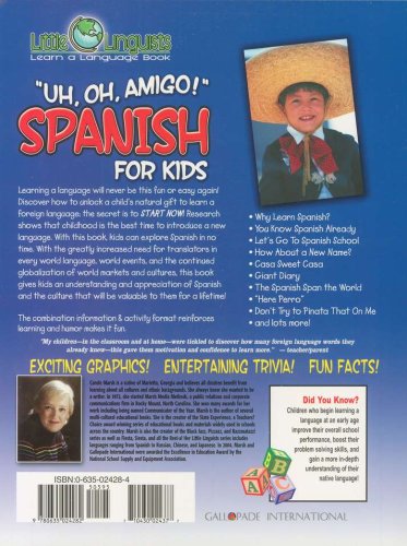 Learning a language will never be this easy or fun again! Research shows that childhood is the best time to introduce a new language. With this book, kids can explore Spanish in no time. With the greatly increased need for translators in every world language, world events, and the continued globalization of world markets and cultures, this book gives kids an understanding and appreciation of Spanish and the culture that will be valuable to them for a lifetime! The combination information and activity format reinforces learning and humor makes it fun.