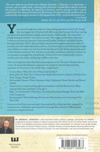 After receiving more than four thousand questions at his Christian Thinkers Society events over the span of six years, Dr. Jeremiah Johnston began to recognize six categories of recurring, trending questions that dominated the rest. In Unanswered, he tackles these tough issues that plague the minds of believers but are rarely addressed in church, such as…Why is it that God often seems to remain silent?How can we trust in the bodily resurrection of Jesus, and what does it mean for us today?What do Christians need to understand about suicide and mental illness?How should Christians respond to spiritual darkness and the obsession with paranormal activity?Why is biblical illiteracy so dangerous for Christians and the church?Why do we experience suffering and pain? Unanswered will leave you enriched, characterized by a thinking faith, capable to communicate confidently, and committed to escape the tendency to offer trite answers to a skeptical world.