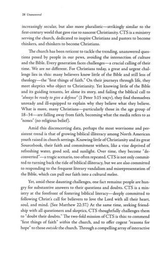 We live in a radically skeptical age. Tough questions are being asked about Christianity. And most believers are ill-equipped to provide the answers our culture and communities desperately need. Many in today’s church do not know the Bible as well as they should and they struggle with their own "big questions" about the faith.