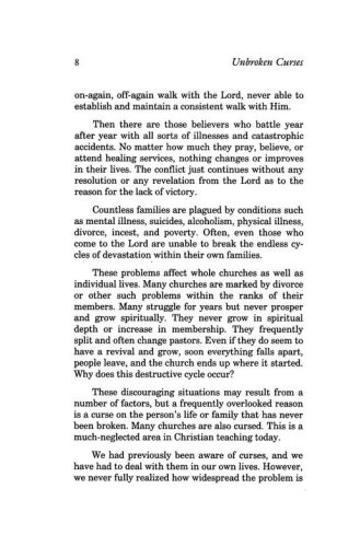 Are you one of the many victims of an unbroken curse? Today, countless Christians throughout the world are plagued by unexplained poverty, calamities, and a variety of adverse circumstances. Their lives are tragically filled with heartache and desperation as they continuously struggle against overpowering temptation, physical and mental illness, and a myriad of catastrophic events. Usually, they are unaware that their plight is the result of an unbroken curse that has been placed upon them and perhaps upon their families.