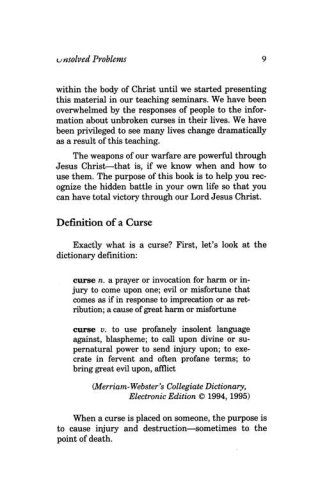 The Bible specifically instructs every believer to avoid curses and to recognize and break them. Yet, an astonishing number of Bible-believing Christians have either not read or do not remember these essential spiritual principles. Thus, many believers live under the affliction of unbroken curses. This book will show you the necessary biblical steps to recognize, prevent, and break every type of curse.