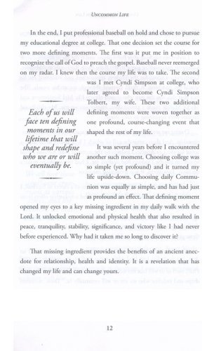 Are you living the life you always imagined? Few of us are because life has a way of dashing dreams, destroying hope and crowding out the important with the necessity of each day. But that was never how we were supposed to live. The Uncommon Life is an ancient anecdote prescribed over 2000 years ago. When applied daily, it allows us to step into the uncommon–a place of significance, destiny, health and fulfillment. It is a place of contentment, rest and strength even amidst the challenges of life. This is the byproduct of the Uncommon Life.