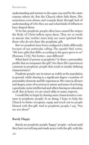 Prophecy is cherished by many as one of the fivefold ministry gifts described in Ephesians 4:11 and foundational to the life of the church. Yet prophetically gifted people have a reputation of being different and difficult to live and work with. Understanding Prophetic People, written by a prophetic pastor who grew up as the son of a prophetic pastor and leader, helps readers better understand, relate to, and even minister to prophetically gifted people.