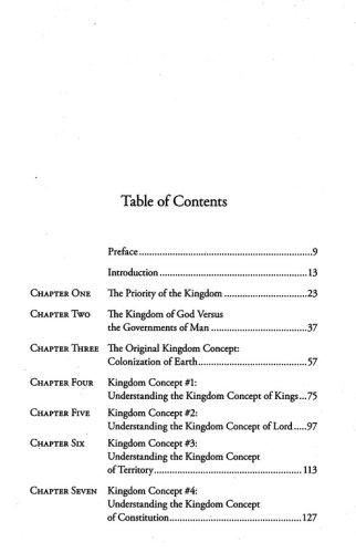 This book is about your original purpose for existence and the source of meaning behind your life. In these pages you will discover the Creator’s divine motivation, design, and mandate for His creation and your role in that creation. After reading this book, you will be equipped with the knowledge to answer some of the questions addressing the heart cries of humanity in our search for a better world. I am convinced also that you will come to believe, as I do, that there is hope for mankind, but only as we reconnect to the source of creation and our Creator’s original concepts for life on planet earth. It is this concern that this book will attempt to address. The goal of this book is to reintroduce the concepts, principles, and nature of true authentic kingdoms as presented by the Creator and show the superior and advantageous nature of kingdom as compared to any religion, political ideology, government system, or social program. Join me as we explore and understand the precepts and principles of "the Kingdom."
