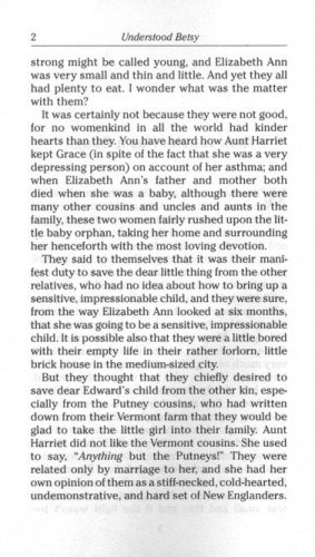 Nine-year-old Elizabeth Ann has been raised in the city by loving but overprotective aunts who speak in disapproving whispers of "those horrid Putney cousins." So imagine the child's shock when she's forced to move in with the dreaded country kin. They keep pets in the house! They eat in the kitchen and expect her to walk to school by herself! But little by little, as she helps with the chores around the farm and makes new friends, sickly, self-centered Elizabeth Ann is transformed into confident, independent Betsy.