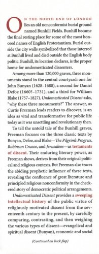 Freeman concludes that dissent, so crucial to the establishing of democracy, remains equally essential for its flourishing. Buried deep in their full narrative of religion and resistance, the three monuments at Bunhill together declare that dissent is not disloyalty, and that democracy depends on dissent.