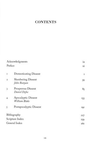 Undomesticated Dissent provides a sweeping intellectual history of the public virtue of religiously motivated dissent from the seventeenth century to the present, by carefully comparing, contrasting, and then weighing the various types of dissent—evangelical and spiritual dissent (Bunyan), economic and social dissent (Defoe), radical and apocalyptic dissent (Blake).