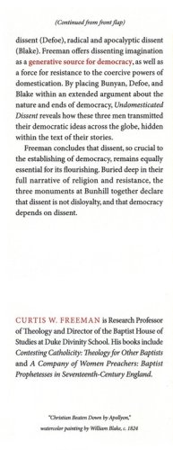 Among more than 120,000 graves, three monuments stand in the central courtyard: one for John Bunyan (1628–1688), a second for Daniel Defoe (1660?–1731), and a third for William Blake (1757–1827). Undomesticated Dissent asks, "why these three monuments?" The answer, as Curtis Freeman leads readers to discover, is an idea as vital and transformative for public life today as it was unsettling and revolutionary then.