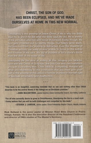 Christianity is the worship of Jesus Christ. If He is who the Bible says He is, and if He did what the Bible says He did, He is worthy of the exclusive, attention and focus of our lives. Sadly, though, the Son gets crowded out by earthly things. Our hearts grow slack, our love runs cool, our worship is distracted. Even the treadmill of Christian activity can keep us ever unable to focus on the Author and Finisher of the race. We sip at puddles of sin a stone's throw from the Well of the water of life. Uneclipsing the Son aims at ending all this, bringing you face to face with the Christ of Scripture, the only one who can transform you just by knowing Him. Clear, biblical, and compelling, Holland will drive you relentlessly to the conclusion that you must give yourself to the worship of this Jesus or forever stumble in the half-light of spiritual uncertainty and disaffection.