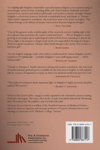 With its scholarly discussions of myth, German idealist philosophy, negative theology, and mysticism, shot through with reflections on personal religious experiences, Unfading Light documents what a life in Orthodoxy came to mean for Sergius Bulgakov on the tumultuous eve of the 1917 October Revolution. Written in the final decade of the Russian Silver Age, the book is a typical product of that era of experimentation in all fields of culture and life. Bulgakov referred to the book as miscellanies, a patchwork of chapters articulating in symphonic form the ideas and personal experiences that he and his entire generation struggled to comprehend. Readers may be reminded of St. Augustine's Confessions and City of God as they follow Bulgakov through the challenges and opportunities presented to Orthodoxy by modernity.