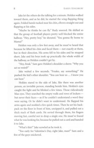 Despite his quiet ways and quirky behaviors, Holden Harris is very happy and socially engaged—on the inside, in a private world all his own. But Holden is an eighteen-year-old with autism. Every day he is bullied at school by kids who only see that he is very different.