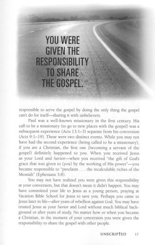 Christ was clear: as you go, you are to make disciples. Imagine what the world might be like if you practiced those simple words: as you go. Unscripted empowers you to shake off stale evangelism techniques and programs and embrace a way of life that connects you with the spiritual power needed to effectively witness and where meaningful relationships are built through which your witness can flow. Imagine the possibilities of what Christ wants to do when you live Unscripted.