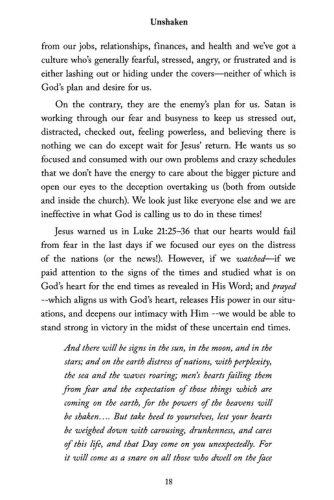 "As the world around us spirals out of control and many are overwhelmed with fear and uncertainty, Unshaken provides a solution—draw near to God!"