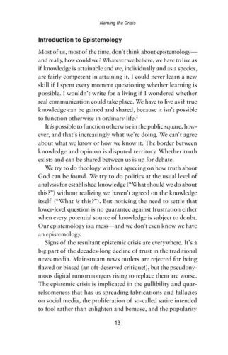 Drawing from her extensive experience in journalism and her training as a theologian, Kristian explores social media, political and digital culture, online paranoia, and the press itself. She explains factors that contribute to our confusion and helps Christians pay attention to how we consume content and think about truth. Finally, she provides specific ways to take action, empowering readers to avoid succumbing to or fueling the knowledge crisis.