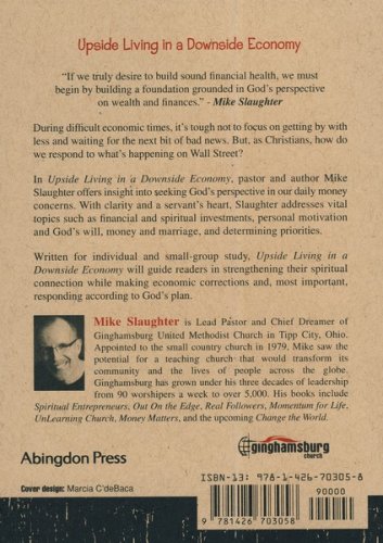 During difficult economic times, it's tough not to focus on getting by with less and waiting for the next bit of bad news. But, as Christians, how do we to respond to what's happening on Wall Street? In Upside Living in a Downside Economy, pastor and author Mike Slaughter offers insight into seeking God's perspective in our daily money concerns. With clarity and a servant's heart, Slaughter addresses vital topics such as financial and spiritual investments, personal motivation and God's will, money and marriage, and determining priorities. Written for individual and small-group study, Upside Living in a Downside Economy will guide participants in strengthening their spiritual connection while making economic corrections and, most importantly, responding according to God's plan. Click here to view a clip of Mike Slaughter!