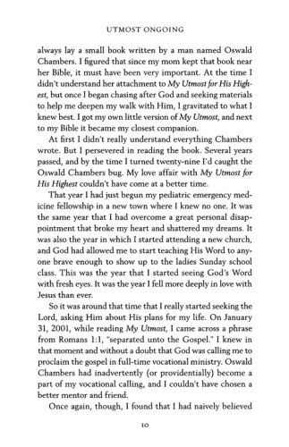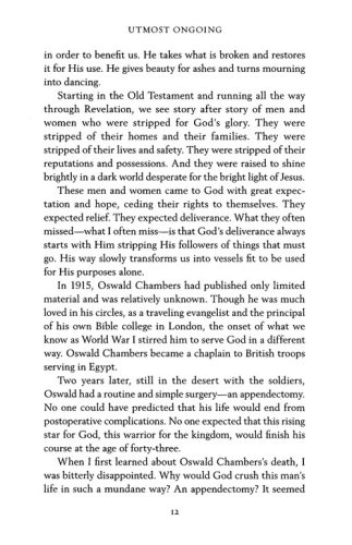 The beloved devotional My Utmost for His Highest has challenged, encouraged, and moved people to think more deeply about their relationship with the Lord. Utmost Ongoing is filled with contributions from an eclectic group of people who share exactly what that devotional has meant to them. From Christianity Today International’s Harold Myra to contemporary Christian music artist Phil Joel, contributors select a My Utmost for His Highest quote and then expound on what it means in their lives with personal insights and stories. Stretch your understanding of God and how He works as you ponder the timeless wisdom of Chambers paired with modern-day stories of inspiration.