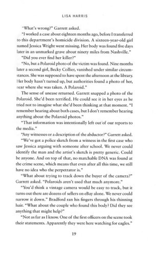 During Garrett Addison's first week on the job as a criminal investigator for the Tennessee Bureau of Investigation, his team is called out to a murder scene of a young girl. She's the third victim in a string of disappearances with one thing in common–a Polaroid photo of each victim left behind at the crime scene.