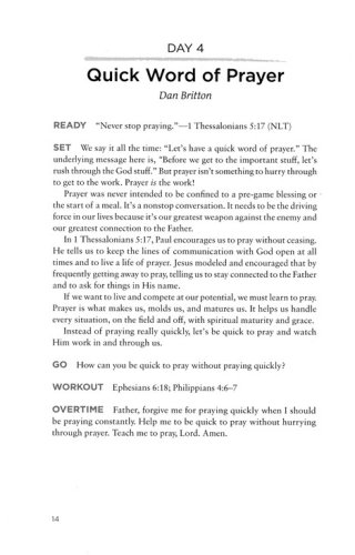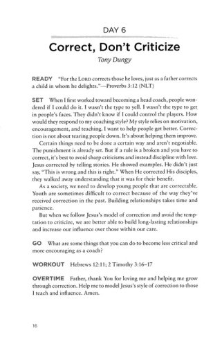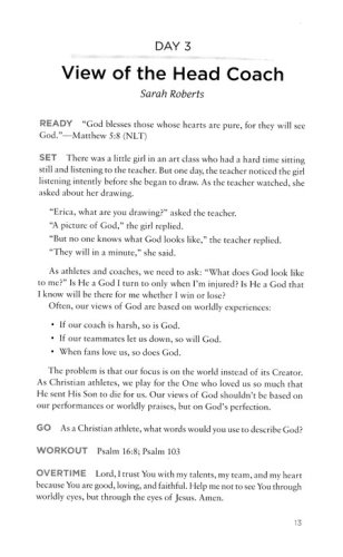 Even as they strive for victory on the field or on the court, athletes and coaches can make strides toward richer spiritual lives. Growing in faith helps athletes and coaches grow as positive influences on the teammates, coaches, opponents, and parents around them. This 365-day devotional encourages athletes and coaches to take a time-out to rethink and re-center on their faith. Each entry opens with an inspirational thought and a related Scripture. A reflection question at the end of each entry helps the reader apply the lesson to his or her life as both a believer and a participant in the competitive arena.
