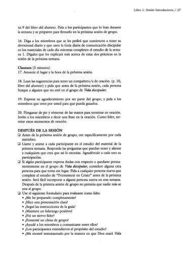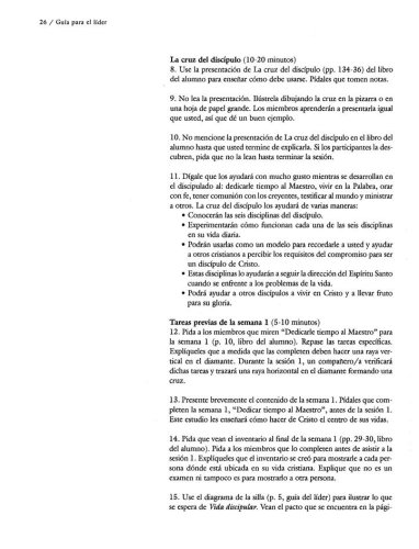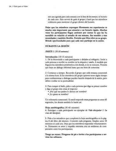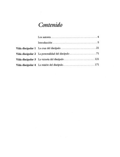 Este libro proporciona una guía detallada para el líder, ayudándole en su función de facilitador del grupo pequeño en el proceso de los 4 volúmenes de Vida discipular. Además da instrucciones para los breves retiros que se llevan a cabo al finalizar cada volumen.
