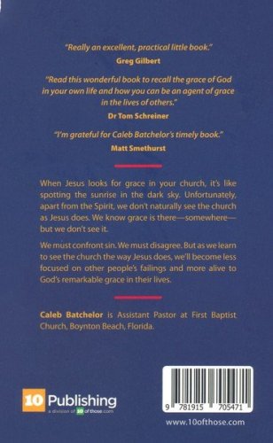 Unfortunately, apart from the Spirit, we don't naturally see the church as Jesus does. We know grace is there-somewhere-but as hot tempers, cold relationships, bitterness, unremarkable sermons, lacklustre programs, and unmet expectations fill the page, grace seems invisible. We must confront sin. We must disagree. But as we learn to see the church the way Jesus does, we'll become less focused on other people's failings and more alive to God's remarkable grace in their lives.