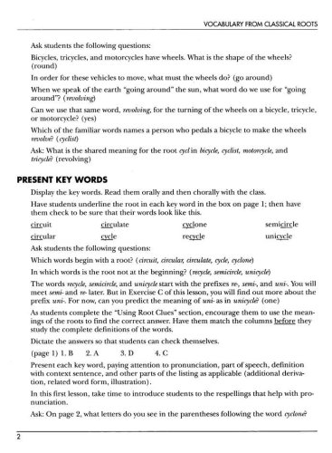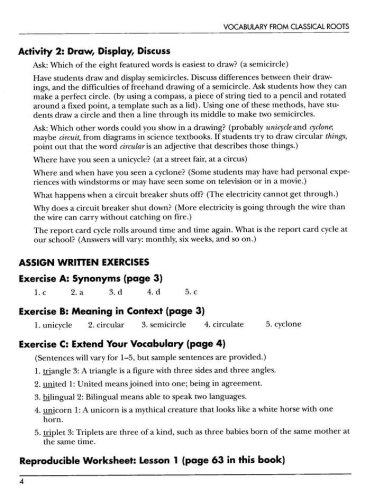 This teacher's guide and answer key is designed to be used with the Vocabulary From Classical Roots Grade 5 Student Book (sold-separately). An introduction, lesson plan format, additional word learning strategies, information on Venn Diagrams and Definition maps are all included before moving on to individual lessons. Each lesson contains a key word box, introduction, preview of similar words, activity instructions, key word lesson, two oral practice activities and answers for written exercises that are presented in the student book. Reproducible worksheets are also included in an appendix in this book. Review lessons, activity masters and answers, and wordlist also included. 80 pages, softcover.