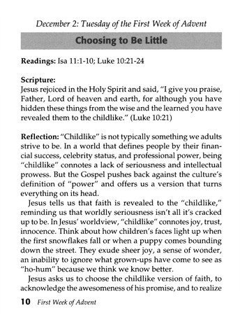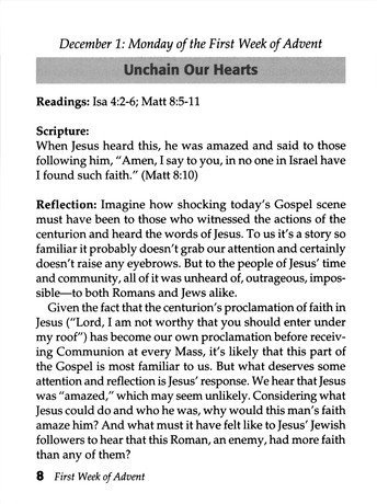 Prepare for the celebration of Christ's coming with this popular and inviting annual guide. During the especially busy Advent and Christmas seasons, this book offers brief, down-to-earth reflections that bring prayer and Scripture into everyday life in a thought-provoking and lasting way. Through Mary DeTurris Poust’s reflections on lectionary readings from the weekday and Sunday Masses, readers will grow in their understanding of the word of God. This book will help busy people enrich their prayer life during the seasons of Advent and Christmas.