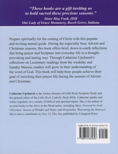 Prepare spiritually for the coming of Christ with this popular and inviting annual guide. During the especially busy Advent and Christmas seasons, this book offers brief, down-to-earth reflections that bring prayer and Scripture into everyday life in a thought-provoking and lasting way. Through Catherine Upchurch’s reflections on Lectionary readings from the weekday and Sunday Masses, readers will grow in their understanding of the word of God. This book will help busy people achieve their goal of enriching their prayer life during the seasons of Advent and Christmas.