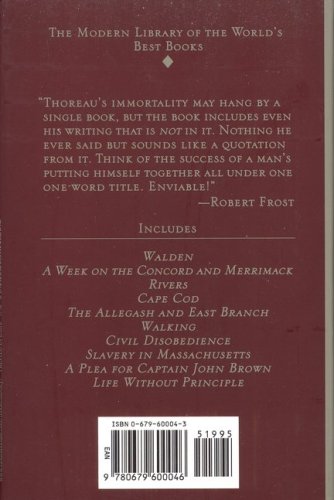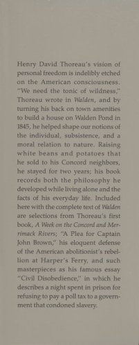 Henry David Thoreau's vision of personal freedom is indelibly etched on the American consciousness. "We need the tonic of wilderness," Thoreau wrote in Walden, and by turning his back on town amenities to build a house on Walden Pond in 1845, he helped shape our notions of the individual subsistence, and a moral relation to nature. Included here with the complete text of Walden are selections from Thoreau's first book, A Week on the Concord and Merrimac Rivers; "A Plea for Captain John Brown," his eloquent defense of the American abolitionist's rebellion at Harper's Ferry, and such masterpieces as his famous essay "Civil Disobedience". 790 pages, hardcover with dust jacket.