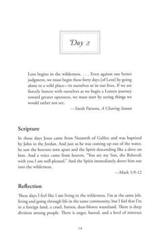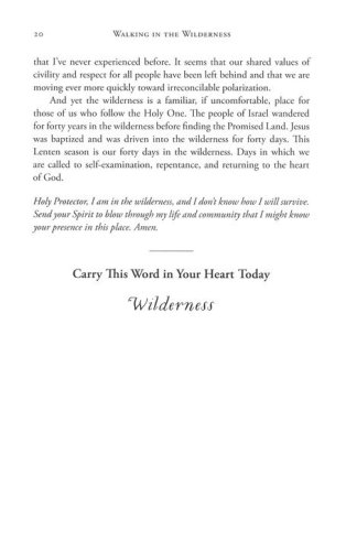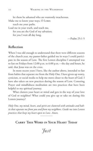 Yet the wilderness is a familiar place for those who follow Jesus. We spend 40 days in the wilderness during Lent""days in which God calls us to self-examination, repentance, and making room for the Holy One in our lives. Our task during Lent is to clear away the clutter from our hearts so we can be fully present to God and our neighbors.