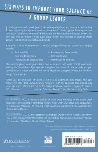 Six Ways to Improve Your Balance as a Group Leader Leading a successful small group is like walking a tightrope. You traverse a taut, exciting line, balancing the dynamic tensions characteristic of every group. Drawing from the concept of "polarity management," Bill Donahue and Russ Robinson help you understand and deal with six dynamic areas every group leader must manage in order to create genuine, transforming small group community. Your group is in for unprecedented connection and growth when you harness the interplay between • Truth and Life • Care and Discipleship • Friendship and Accountability • Kindness and Confrontation • Task and People • Openness and Intimacy Effective, life-giving small groups learn how to embrace both ends of each continuum. Walking the Small Group Tightrope will strengthen your sense of balance, help you gain confidence as a leader, and show you how to release the untapped creative and relational energy in your group.
