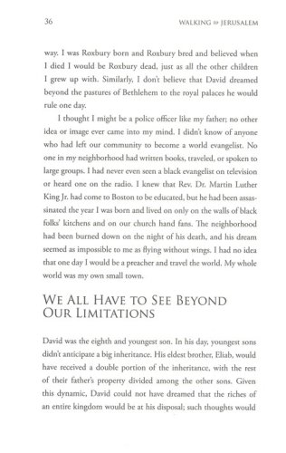 Walking to Jerusalem reminds us that where we start does not determine where we end up. Each step we take is a part of who we will become. So journey with David from his Bethlehem beginnings to his Jerusalem home. Discover with this shepherd boy that destiny is never just a destination. It’s a process God uses to shape who He has called us to be.
