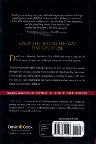 In Walking to Jerusalem, Dr. Chris Hill travels through the twelve cities that shaped David’s life and explores what those places mean in light of God’s calling to us. Dr. Hill also walks with us through the "cities" in his own remarkable story. Along the way, you will discover, or reawaken, your own unique calling. You will more fully understand the places you have already traveled, become attuned to the spiritual city where God has you now, and be better equipped for where God is leading you.