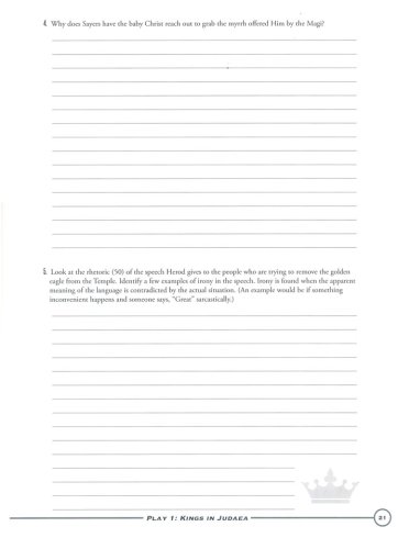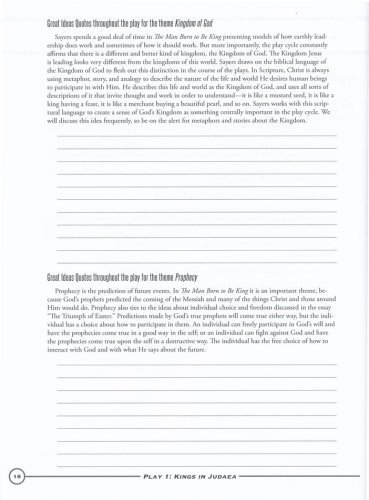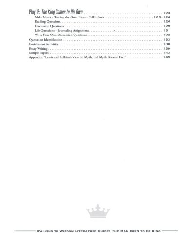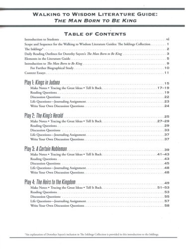 Walking to Wisdom: The Man Born to be King integrates non-fiction essays by CS Lewis, Tolkien, and Sayers that relate to the content in the work. Dorothy Sayers' The Man Born to be King is a play-cycle of the four gospels in dramatic form that explores the nature of kingship and leadership. Three reading schedules–covering 15 days, 20 days, and 40 days–are provided. 149 non-reproducible pages, softcover; consumable if students write on the pages rather than in a notebook.