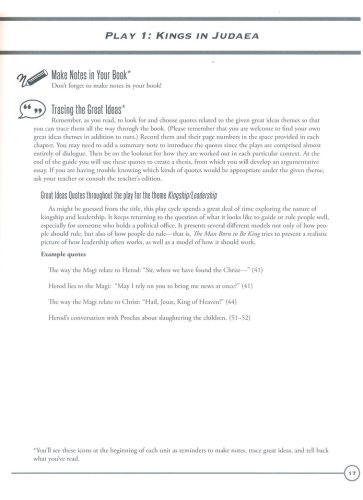 Taking notes in their books Answering reading questions Creating their own questions Reading sample student writing Keeping notes book-wide on themes and motifs Answering discussion questions about thematic material Memorizing important quotations Preparing while reading to write Participating in creative enrichment activities related to the books