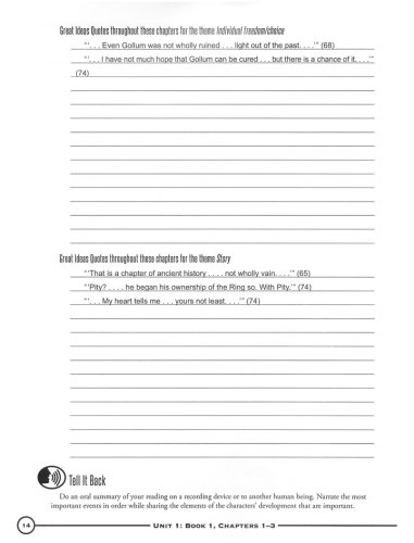 Walking to Wisdom Literature Guide: Tolkien – The Fellowship of the Ring Teacher's Edition